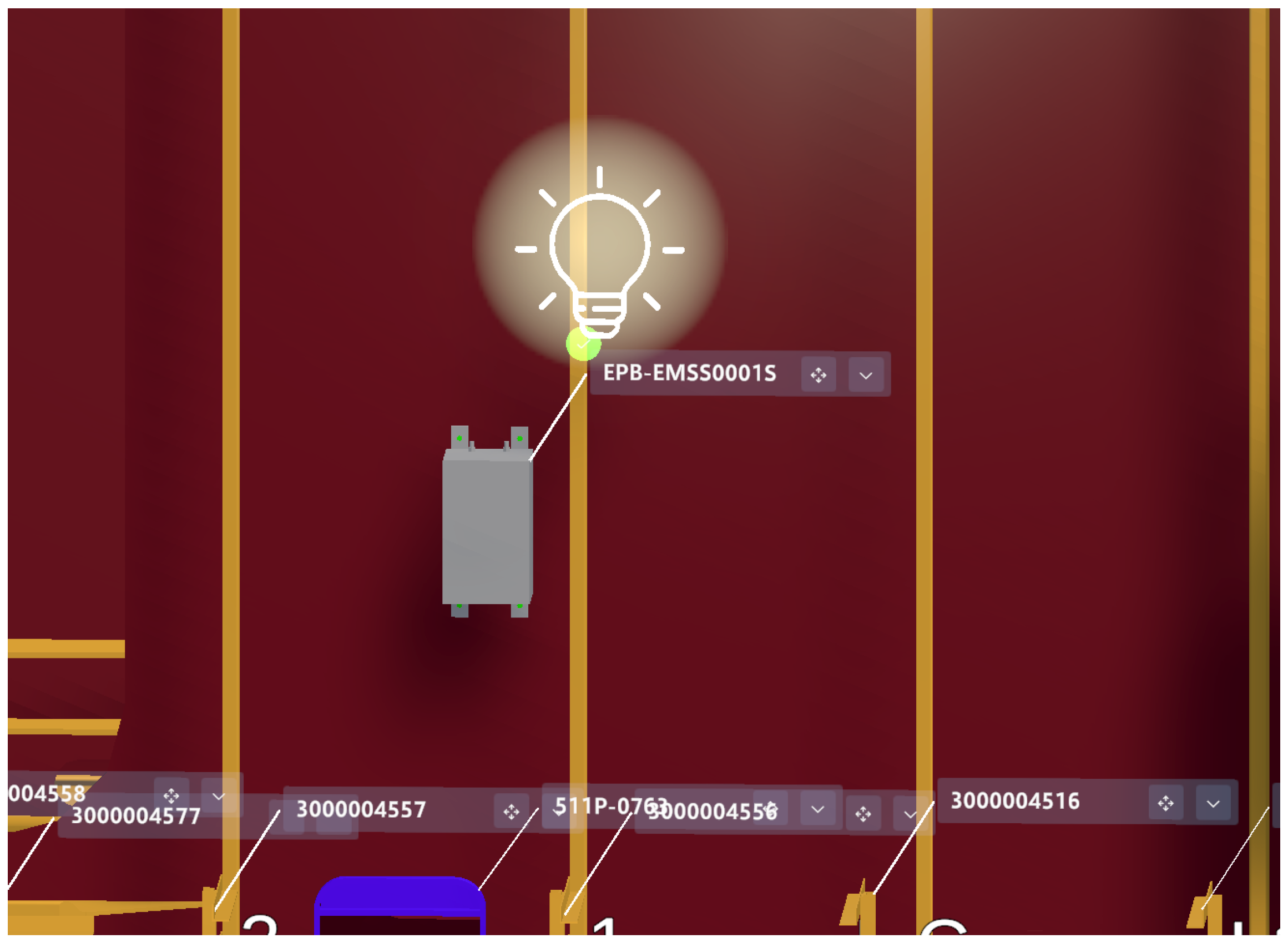 Visualization of electrical components 3D models in the corresponding position.
