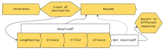 - Resume own speech plan if possible, despite the event of hesitation not being over.
