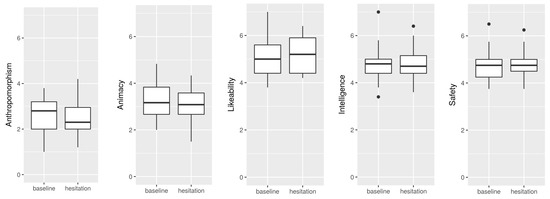- We expect no negative impact of the presence or absence of hesitation on the system’s likability.