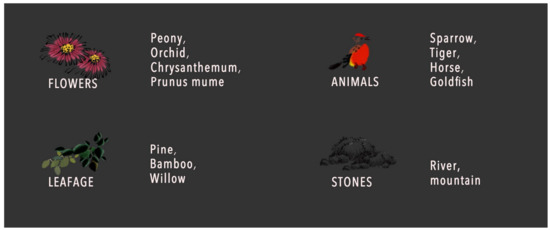 Based on the understanding of colours, the subjects of traditional Chinese painting played a complementary role in the appreciation of Chinese painting. We classified four different types of subjects in Figure 3 which were mentioned and summarised, corresponding to the interpretations of the participants. Meanwhile, the subjects were accepted by non-Chinese interviewees as entry points to learn how to appreciate Chinese traditional painting. SP8:
