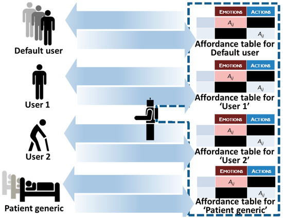One possibility offered by this library is to customise the robot’s affordance behaviour for different users or group of users. This will make the affordance mechanism flexible and applicable to a range of scenarios and users, each with different preferences (Figure 4).