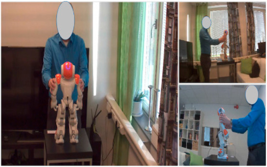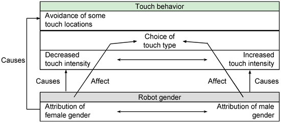 When it comes to humanoid robots, the capability to recognize affective touch may be even more important due to the humanoid form which might elicit expectations of a high degree of social intelligence. Cooney et al. [58] studied users’ affectionate behaviors toward a humanoid robot with capabilities of touch, vision, and sound. In this multimodal interaction, the users were free to interact with the robot in any way they liked and were asked to describe how much affection they communicated by their behavior. The results show that touch was considered significantly more important for conveying affection than distancing, body posture, and arm gestures. Thus, touch plays an important role in the communication of affection from a human being to a humanoid robot [22,58].