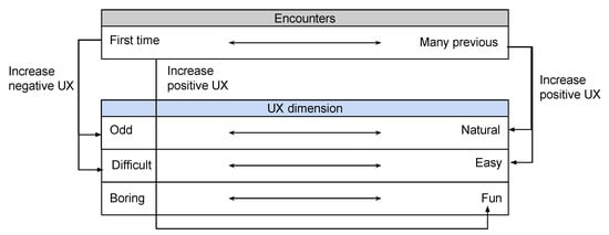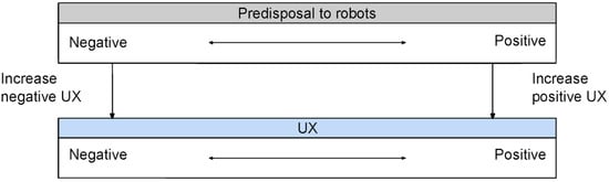 Robots have been entering the world of humans, in vocational as well as domestic setting, for quite a while. Also, social robots are anticipated to have an increasing significance in everyday life for a growing number of people [1,2]. It is therefore important to study how people want to interact with robots and what constitutes an intuitive, smooth, and natural interaction between humans and robots. For social robots, like in all other interactive systems, products and devices, positive user experience (UX) is necessary in order to achieve the intended benefits. The UX is not built into the product itself; instead, it is an outcome of the interaction that depends on the internal state of the user, the quality and attributes of the product, and the particular situation [3,4]. Hence, UX is difficult to define but easy to identify [5,6]. The UX of social robots needs to be a central issue of concern, because positive UX underpins the proliferation of social robots in society [7]. Accordingly, negative UX can result in reluctance to interact with robots and challenge the acceptance of future robotic technologies [8]. However, a positive UX does not appear by itself. It has to be systematically, thoroughly, and consciously designed for, not least in the interactions between humans and robots [1,3,5,9,10].