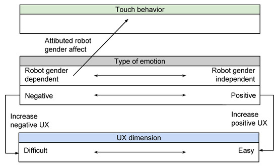 Future work includes addressing the embodied and situated aspects of interacting with humanoid robots, which have been implicitly mentioned in the users’ experiences when interacting with the robot through touch. The work reported in this study presents a short-term perspective of how the users experience the interaction. However, it lacks a long-term perspective and it would be of interest to examine whether the UX would change if the HRI occurred during a prolonged time frame, e.g., the perceived trickiness when conveying emotions to the robot through touch only. An additional aspect is the reverse, investigating how humans experience being touch by robots. Given that touch is a bi-directional modality in nature and the envisioned smooth and intuitive interaction between humans and robot implies complex interaction patterns in order to humanize robots. For example, it has been reported that a robot’s touch reduces feelings of unfairness and enhances persuasiveness [76,77].