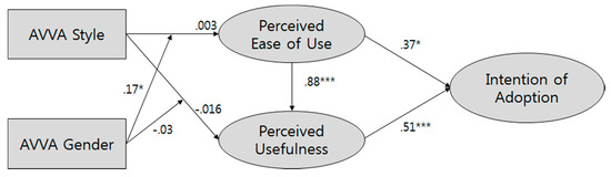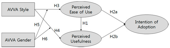 Further, given that TAM scholars have found that PEU and PU play roles of mediators [36], we test for the same relationship in the current context. We hypothesize that both variables will mediate the influence of AVVA style and gender on intention of adoption.