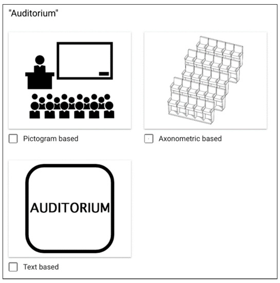 Evaluating different design approaches (1. pictogram-based; 2. axonometric-based; 3. text-based) for the landmark “Auditorium”.