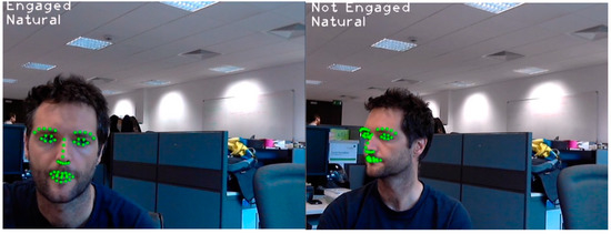 Figure 5). The method measures the head pose within a threshold. For as long as the user’s head pose varies within the range, the user is considered engaged.