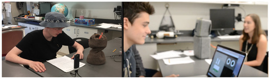 Although a great deal of research has been conducted in the field of human–robot interaction (HRI) among children [15,21,22,23], adults [24,25] and seniors [26,27], very little is known about the relationship between teens and robots. Project EMAR is the design and development of a social robot specifically to gather stress and mood data from adolescents in the wild (within high schools) [20]. Within the increasing number of studies of human–robot interaction (HRI), there has been a great deal of focus on physical safety [28], teleoperation of robots [29,30,31], the quality of HRI [32], collaboration [33,34] and navigation [35,36,37]. More recently, in relation to social robots, there has been an increasing focus on empathy [38,39,40] and trust [41,42,43,44], important factors in developing a social robot. However, increasing our understanding of these important factors as they relate to HRI requires appropriate and contextually valid methods to inform research findings and robotic design.