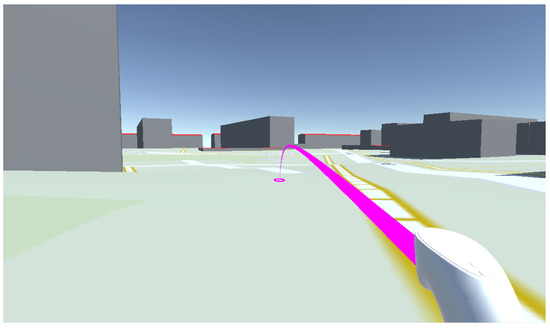 Because of this, the current prototype does not reach the framerate targets that are common wisdom in entertainment-focused VR, which are generally set between 60 and 90 frames per second. While scientific research generally adopts these measures as sensible guidelines, it shows a more complicated, inconclusive picture of VR latency and cybersickness [24,25]. At the same time, compensation routines like asynchronous time warp [26] have become very adept at managing some forms of performance issues, and the constraints we have set are (on purpose) very conducive to these methods—the user is only rotating, and the bulk of the environment remains static. In fact, in most situations, the teleportation indicator was the only object that obviously showed latency. Stronger performance drops that occur during user movement (as the noise level has to be recalculated) are mostly masked by teleportation, as the sudden snap movement covers frame drops to some degree.