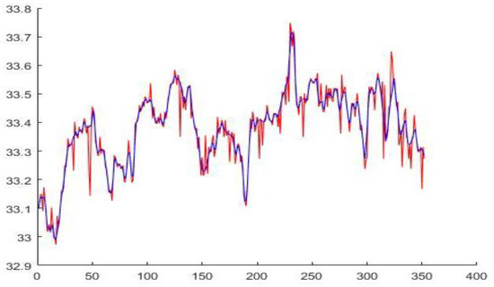 Raw thermal signal (red line)-smoothed thermal signal using rlowess method (blue line).
