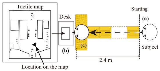 The subjects walked to the warning block located at a distance of 2.4 m from the starting point, where they were guided by the proposed method. The results obtained using the new approach were compared to those obtained using the tactile map method.