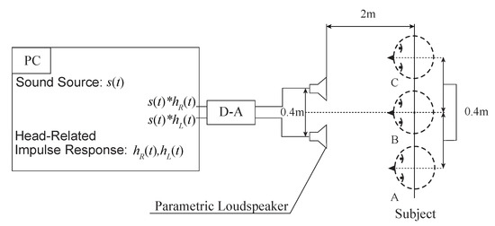 - Aoki, S.; Toba, M.; Tsujita, N. Sound localization of stereo reproduction with parametric loudspeakers. Appl. Acoust. 2012, 73, 1289–1295. [Google Scholar] [CrossRef]