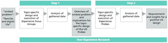 Thus, the proposed two-step approach for user experience research involving experience focus groups (step 1) and experience probes (step 2) was applied for the “wicked problem” (see Figure 2).