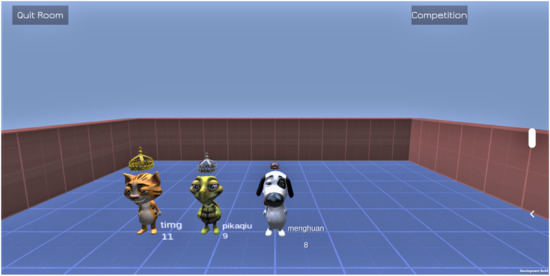 In a competitive interaction, users can compete with other users through their pets. We designed user interfaces for competitive interaction across the network. Users willing to participate in the competitive interaction will be included in a name list, which is considered to allow other users to access their level information. The user can view the name list of users and choose rivals to compete (see Figure 4). The design of competitive interaction is asynchronous. That is, when one user participates in the interaction, other users do not need to attend the interaction at the same time. According to the user’s choice, the system will instantiate the pets of rivals to compete. It ensures that users can get feedback through competitive interaction at any time.