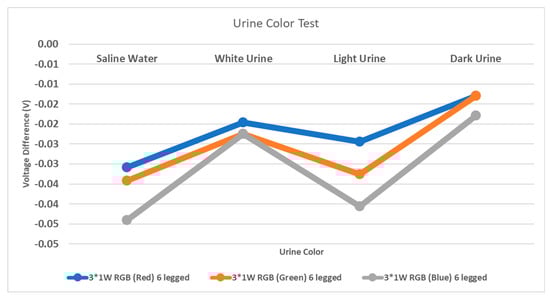 The current presence of urine in a substance or mixture is detected via the presence of urochrome or urobilin that gives the urine its yellow color. The most common method is dipstick test [15] which analyzes urine composition using chemical means and other noninvasive methods such as Ultraviolet (UV) light whereby the method can be time to consume [16,17]. From the results, as shown in Figure 11, the amount of light intensity detected by the LDR is very negligible. However, the resistance calibration test has shown that the sensing probe can detect different urine concentration once the correct resistance value is set. In other words, the urine concentration in gross haematuria has the potential to affect the accuracy in detecting the blood concentration.