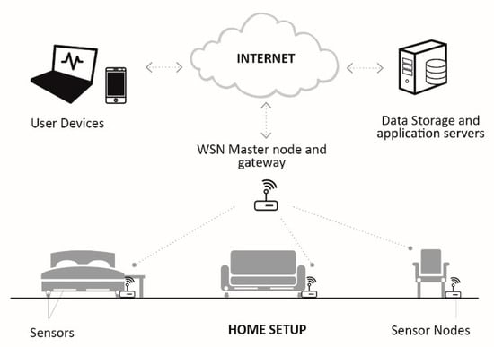 - Heikkilä, T.; Strömmer, E.; Kivikunnas, S.; Järviluoma, M.; Korkalainen, M.; Kyllönen, V.; Sarjanoja, E.M.; Peltomaa, I. Low intrusive Ehealth monitoring: Human posture and activity level detection with an intelligent furniture network. IEEE Wirel. Commun. 2013, 20, 57–63. [Google Scholar] [CrossRef]