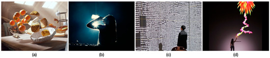 Figure 4c (Title: Light Evaporating with People II, Credit: teamLab, Exhibition view of teamLab Borderless, 2019, Shanghai © teamLab, courtesy Pace Gallery); Figure 4d (Title: Ice Watch, Credit: Ice Watch, 2014, by Olafur Eliasson and Minik Rosing, Martin Agryroglo photography); Figure 5a (Title: Ford 021C Concept Car, Credit: Ford 021C Concept Car, 1999, Marc Newson Ltd. and Ford, Tommaso Sartori photography); Figure 6d (Title: Drifter, Credit: Drifter, 2017, DRIFT and SkySpirit at Amory Show); Figure 7a (Title: Sunflower Seeds, Credit: Sunflower Seeds, Ai Wei Wei, 2010, Photo: © Tate, London 2020); Figure 7c (Reprinted by permission from Springer Science: Algebraic Topology: An Introduction, William S. Massey © 1977); Figure 8a (Title: Dreaveler, Credit: Dreaveler, 2018, by Taehoon Park at Pause Fest Motion Response 2018); Figure 8d (Title: Light My Fire, Credit: Light My Fire, 2008, by Florian Pittet, Ecal x SIGMASIX); Figure 9a (Beach House live at the House of Blues in Boston, 2018, by John Hutchings on Vanyaland.com. Link: https://bit.ly/2IEWVpm); Figure 9b (Title: Sketch Aquarium, Credit: teamLab, Exhibition view of teamLab Borderless, 2018, Tokyo © teamLab, courtesy Pace Gallery); Figure 9c (Title: Quarantine Stories, Credit: Quarantine Stories, 2020, by RNDR. Link: http://quarantinestories.today).
