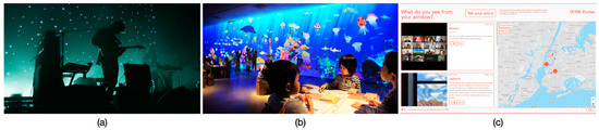 Examples suggested by the participants (Reprinted with permission): (a) Beach House concert, (b) TeamLab aquarium, and (c) Quarantine Stories by RNDR.