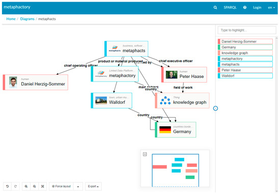 Ontodia (now contained within the Metaphactory software suite): List, context, and details subviews. Source: Image with permission courtesy of Metaphacts, metaphacts.com.