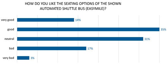 Related research has also proven that automated shuttle buses will become an important supplement to public transport, since they provide an innovative, sustainable, profitable, and demand-oriented mode of transport that can in particular provide a remedy for off-season times and the first and last mile operation in suburban areas that could not otherwise be served economically []. In recent years, automated (and autonomous) driving was controversially debated, e.g., [,]. It is also a matter of fact that the future development of this technology will be increasingly dependent on public acceptance, trust in the technology, and the consideration of personal needs and expectations []. At this early stage of development and public launch, riding in a shuttle bus without an operator on public roads, in downtown areas or pedestrian zones, creates anxiety among the public [].