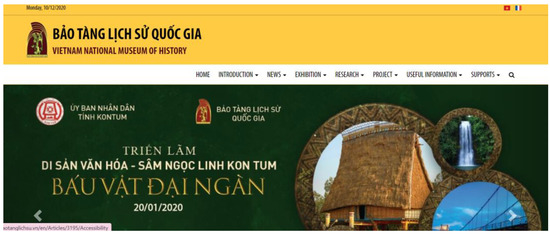 - Vietnam National Museum of History: http://baotanglichsu.vn/en (accessed on 29 October 2021). Its virtual museums: http://disanvanhoaphatgiao.egal.vn/ (accessed: 29 October 2021) and http://denco.egal.vn/ (accessed on 29 October 2021).