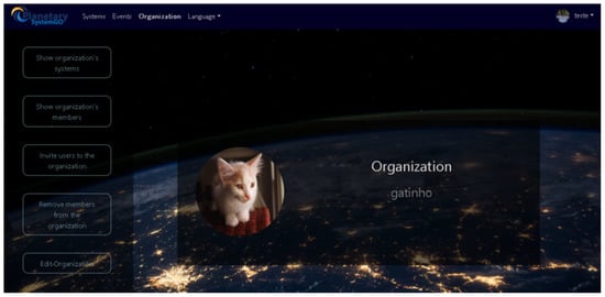 In the remainder of this section, we will discuss the features of our front-end. We start by presenting the latest changes in terms of user interface. The system allows for user registration through email authentication and password creation and changes, an almost universal feature in today’s web systems and applications (Figure 6). The front-end system reflects the organization created at the back-end level, and specific views for Administrators and Organizations are available, presented in Figure 7 and Figure 8, respectively.