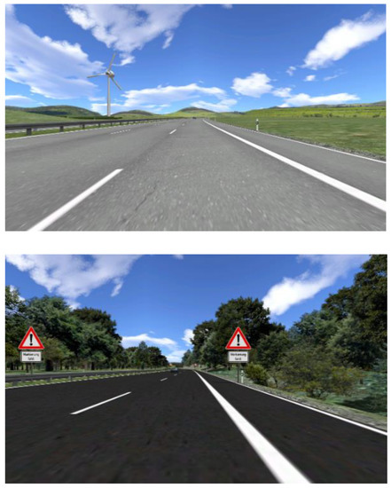 The three different highway segments were distinguishable for the participants due to the road design and the environment. Figure 2 shows the segments.