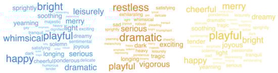 - Imbir, K.; Gołąb, M. Affective reactions to music: Norms for 120 excerpts of modern and classical music. Psychol. Music 2017, 45, 432–449. [Google Scholar] [CrossRef]