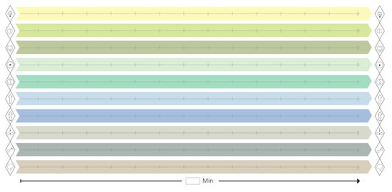 To sum up, using the Modality Card Deck, the participants were able to independently produce concepts of multi-modal behavioral expressions for the Pepper robot. They also experienced working with the cards as positive and helpful. The cards can hence be regarded as a suitable tool to engage older adults in the design of communication and interaction between users and social robots. Still, the three workshops also revealed some ideas for improvement. The Modality Card Deck at its current state does not provide any guidance for putting the chosen communication modalities in a chronological order. This could be supported by introducing a forth step—timing the interplay of communication modalities. While the tangible cards can easily be arranged on the table in the desired order to indicate the time course, it might be nice to have some additional visual support for arranging the cards. This could, for example, be a timeline as presented in Figure 10, on which the users can mark the duration, as well as the starting and end time points for the different modalities. Moreover, not all behavioral expressions were described detailed enough to be implemented on the Pepper robot. More specifically, this mostly concerns the design propositions for the modalities “Sound”, “Speech”, and “Dynamic Expression”. It became obvious that some parameters cannot easily be specified by non-experts without the opportunity of experiencing them. For “Dynamic Expression” some clarification could be provided during the workshops when participants acted out the expression themselves. A video recording of the users performing the gesture could– together with the textual specification–provide sufficient guiding for the implementation of the dynamic expression. This is, of course, only an option when designing for a humanoid robot. To specify sound and light, it could be helpful to provide participants with the opportunity to experiment with different settings for the communication modality. Naturally, the best option would be to have a robot present at the PD workshop and let participants work directly on the robot, for example by using rapid prototyping techniques. However, this is often not feasible due to transportation expenditure, time constraints, and availability of the required amount of robots. As an alternative, one could include other tools that allow participants to specify the parameters for single communication modalities such as manipulable light sources and robot speech synthesizers.