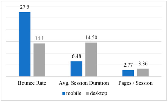 It is, however, important to note that when we compare access by mobile with desktop during the pandemic, the average session duration and pages viewed per session were much higher with a low bounce rate for desktop, as seen in Figure 13. This probably indicates learners’ preference for desktops as a learning device for longer study time while mobiles were used for quick access.