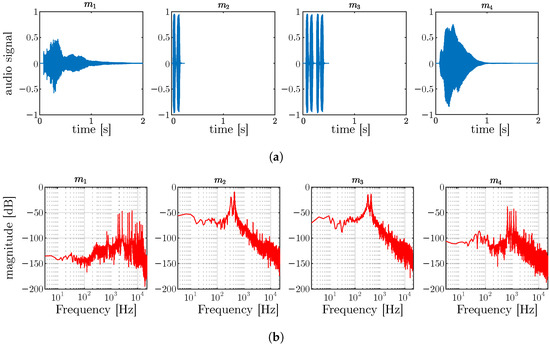 A visualization of the used auditory icons from to showing their corresponding waveform (a) and spectrogram (b).
