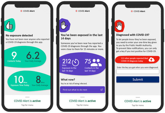 Control versions of key UIs of COVID Alert [18].