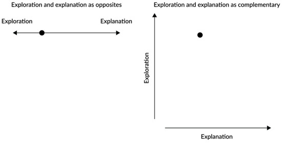 Exploration and explanation as complementary instances, as proposed by Thudt et al. [8].