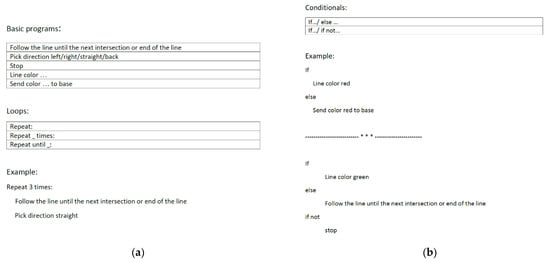 - Alamer, R.A.; Al-Doweesh, W.A.; Al-Khalifa, H.S.; Al-Razgan, M.S. Programming Unplugged: Bridging CS Unplugged Activities Gap for Learning Key Programming Concepts. In Proceedings of the Fifth International Conference on e-Learning (econf), Manama, Bahrain, 18–20 October 2015; pp. 97–103. [Google Scholar]