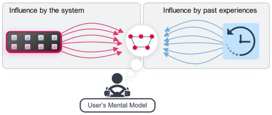 MMs are also influenced by the system itself, for example, by its form of representation [,]. The user relies on information such as what the device looks like and what the user has read about the system in advertisements, articles, instruction manuals [] or system descriptions []. The product therefore can communicate a model from the product’s designer to the end user. During the first visual inspection of the system and therefore before interacting with it, the user builds an initial MM based on visual appearance [].