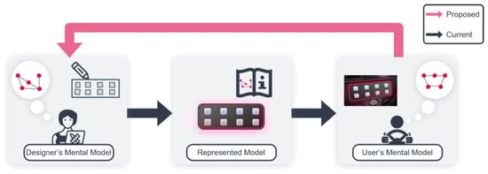 As noted by Cooper et al. [] and Norman [], it is possible that the system’s designer and user have different MMs of the same system (Figure 2 and Figure 3). While designers often expect that the user’s MM of the product to be developed matches their own [], this is not always the case since the product itself communicates the model to the end user, as shown in Figure 3. This can lead to products contradicting existing MMs of the user group, which has to be avoided, since products should match or build upon existing MMs [,].
