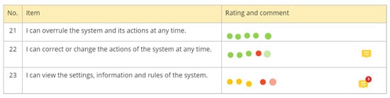 | 5 | I can change how automatically the adaptive system adapts at any time (e.g., functions are executed automatically by the system or must first be confirmed by me). | 0.76 | 5.0 | 0.76 |