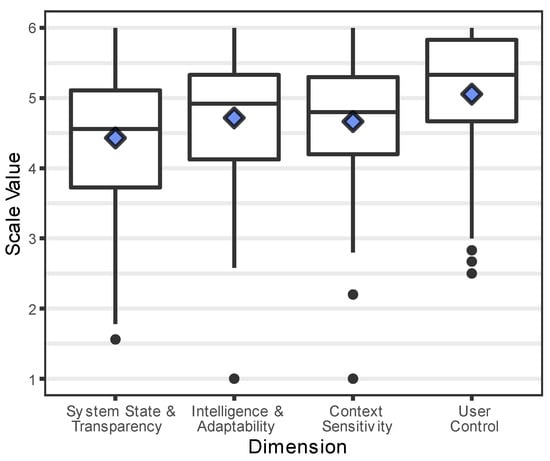 | 2 | I can override the adaptive system and its actions at any time. | 0.64 | 5.5 | 0.65 |