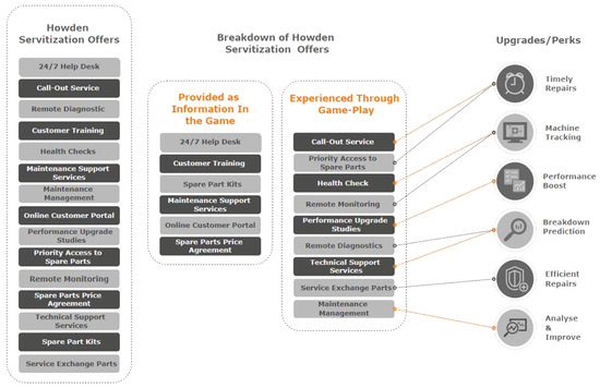 Most of the work concerning video-game-based learning and servitization has focused on emphasizing educating/conveying the overall servitization concept. Except for the study mentioned above, where an imaginary company was used to illustrate servitization in action, to the best of our knowledge, this is the only example illustrating a specific servitization offer for a real-world company.