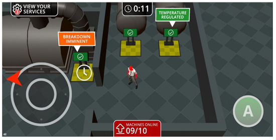 The virtual world of the game was intentionally based on an abstracted version of a typical engineering floorplan and the machines/objects that represent the daily activities of these industries. This enabled the game to be contextualized primarily through text and attract the users’ attention to the offers provided whilst presenting an immediate demonstration of their choices in the virtual environment. The machinery in the game is not explicitly described or detailed; this is deliberate to avoid limiting the design and development of this prototype to cater to one specific sector or machine. Maintaining the virtual world and objects simple in design and functionality prevented distracting inaccuracies that could draw the player’s attention from the main objective of the game.