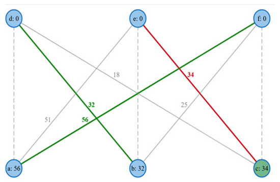 In the iterative record linkage process, it is possible to link blocking and matching. New attribute values from a merge-based entity matching step can be used to change the block assignment of the descriptions. The changed blocks lead to new comparisons at the matching step. The blocking and matching are repeated alternately until the blocks cease to change or another termination criterion is fulfilled [30]. Figure 5 shows the similarity graph output by entity matching for the research data, resulting from using sorted neighbourhood blocking and a calculation of weighted similarity, according to the example in Figure 1.