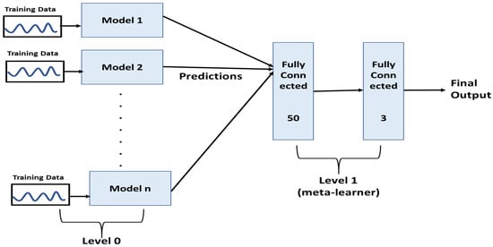 In the meta-learning stage, the output of the sub-models was input into a shallow neural network with one dense layer and one softmax classifier. The schematic diagram of the overall ensemble model is shown in Figure 5.