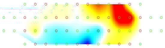 While some of the stimuli received a different emotion label than we expected, the verbal response correlated with their hemodynamic responses. In order to analyse this, we used the image frames generated from the activation map videos by the Matlab NIRSIT Analysis Tool [85]. The activation map shows the changes of HBO2 and HbR in the prefrontal cortex over time. The map reflects the prefrontal cortext area, where the dots represents the channel locations. The colorful areas show which areas in the pre-frontal cortex were activated at a given time, and the color intensity represents the value. The frames were extracted at 25 frames/second and segmented according to the song length. Figure 8 shows a sample frame from the activation map videos.
