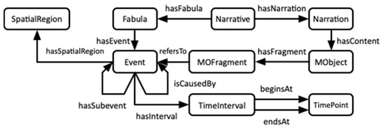 - Meghini, C.; Bartalesi, V.; Metilli, D. Representing Narratives in Digital Libraries: The Narrative Ontology. 2020. Available online: http://www.mingei-project.eu/wp-content/uploads/2020/06/representing_narratives.pdf (accessed on 23 February 2022).