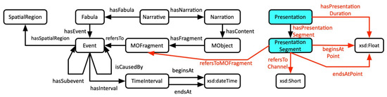 In the domain of knowledge representation, Semantic Web technologies and ontologies are today standard tools in CH [19] since the pioneering work of Europeana [20]. In the last decade, event-centric representations have been preferred over object-centric representations [21] because they provide the expressivity to support semantic search, browsing, visualization, and storytelling [22,23,24,25]. Event is a basic class in EDM, inherited from the CIDOC-CRM [26].