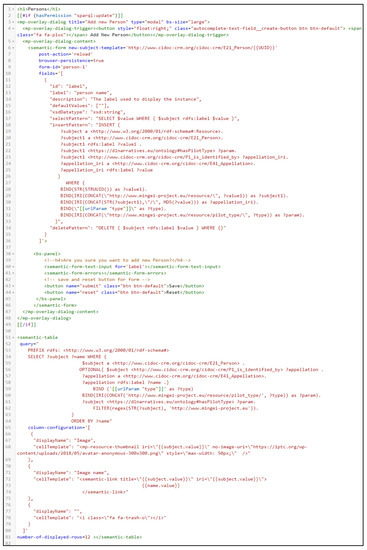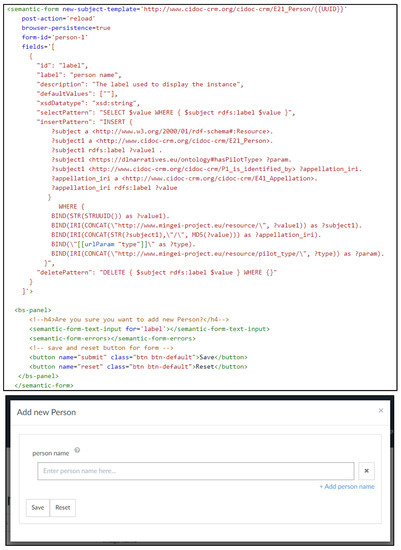 In combination with the curation of media objects, in this step, basic data entries are curated. Such entities are persons, places, materials, objects, tools, etc. According to the craft instance in question, such basic entries may have differentiation, and new entities may be required. For example, in the case of mastic cultivation, the representation of mastic recipes required the introduction of the Entity Recipe Ingredient. In the current version of the authoring platform, these entities are added to the platform through the implementation of new classes in ontology and their binding with new authoring facilities in the authoring platform in a semi-automated manner. Documentation examples are presented in Figure 3.