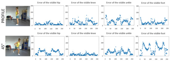 The videos of about 50 knee rehabilitation exercises and 400 potential error videos (about 5 to 10 for each exercise) were collected in the physiotherapy room of the Emineo Private Hospital performing knee replacements [31]. Expert physiotherapist performed the sample exercises and the erroneous ones. The 450 videos were recorded on an iPhone 11 in order to approximate home conditions. In addition, a large subset of the videos was also recorded with the ZED-2 stereo camera (https://www.stereolabs.com/zed-2/, accessed on 22 May 2022) in order to generate ground data for estimating 3D pose errors.
