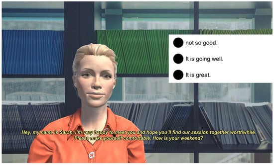 - Provoost, S.; Lau, H.M.; Ruwaard, J.; Riper, H. Embodied conversational agents in clinical psychology: A scoping review. J. Med. Internet Res. 2017, 19, e151. [Google Scholar] [CrossRef] [PubMed] [Green Version]