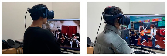 The experiment was conducted with 47 subjects, as shown in Figure 15. The subjects were undergraduate and graduate students of Changwon National University and were recruited through notice boards in the school and messenger announcements. The subjects’ gender, age, use of virtual reality devices, and viewing 360-degree VR videos were investigated using a demographic questionnaire before the experiment. Informed consent was obtained from all participants to participate in the experiment. The subjects consisted of 22 males and 25 females in their 20‘s and 30‘s (20 s–45, 30 s–2). A total of 85.1% (40 people) of the subjects had virtual reality device experience, and 63.8% (30 people) had 360 VR video experience.