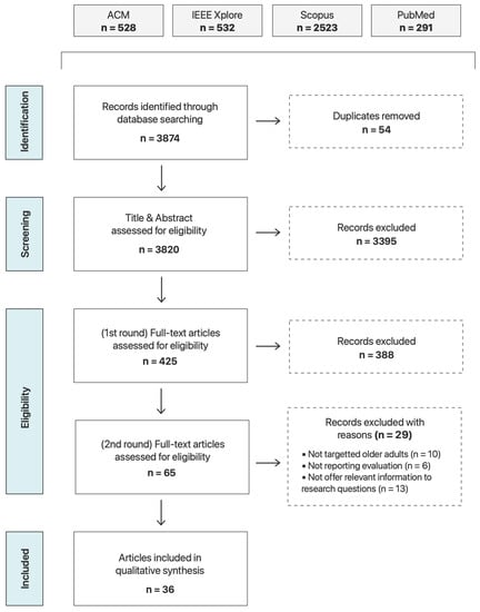 - Papers presenting systems that were specifically designed for or evaluated with older adults (65 years old or over), with recent HMDs (introduced after 2010) covering any range of physical and cognitive capabilities.